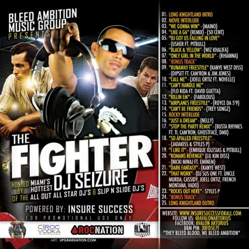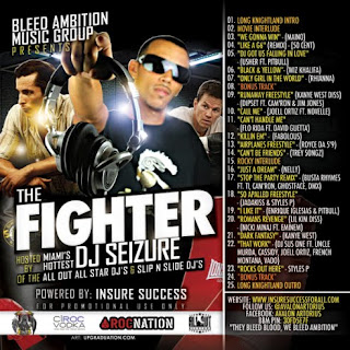 Bleed Ambition Music Group, with the financial backing of mega marketing and promotional platform, “Insure Success,” has teamed up with Miami’s hottest “DJ Seizure” of the All Out All Star DJ’s & Slip N Slide DJ’s, to provide the world with what some are calling a “gift of music.” DJ Seizure is regarding to be one of the hardest working, up and coming DJ’s in the state of Florida, and continues to take the world by storm with all music endeavors. You can catch DJ Seizure LIVE on 88.7 FM www.887dablazefm.com Weekly 4-6 PM and LIVE every Sunday on coast2coast.fm from 6-8 PM. Themed from the motion picture “The Fighter,” starring Mark Whalberg, Christian Bale, and Amy Adams, the music actually encourages you to see the movie if you have not. What makes the perfect blend of music epic, is its variety. Undeniably so, it differentiates itself from any other musical compilation to date. When your in your car listening to track after track, it’s as if your experiencing a movie! There are songs that make you want to dance, make love, hang out with your comrades, meditate, laugh, and just basically have a good time. Most ‘mixtapes’ available online are in abundance, however lack quality. How many times do you purchase an album or mix and there are only a few songs that you enjoy? On this up and coming project, the quality of music is short of ‘surreal.’